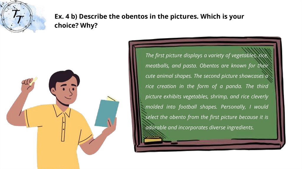 TTEx. 4 b) Describe the obentos in the pictures. Which is your