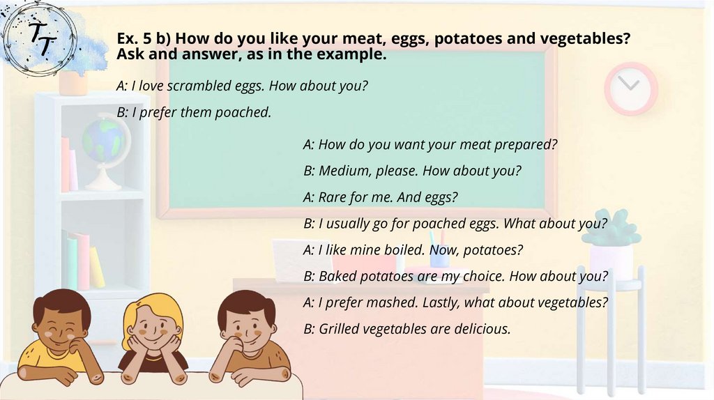 TTEx. 5 b) How do you like your meat, eggs, potatoes and vegetables?