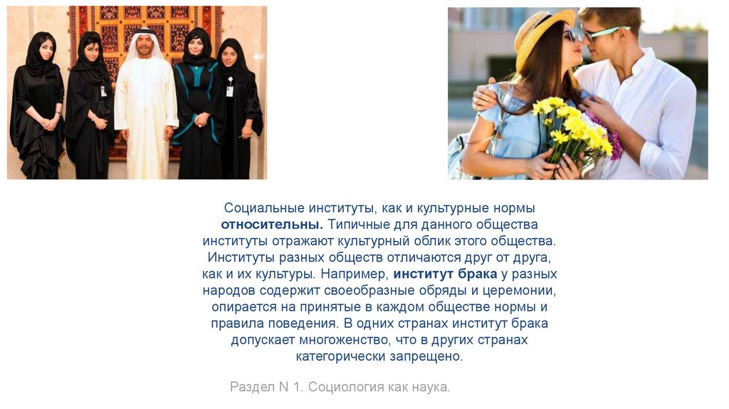 Социальные институты, как и культурные нормыотносительны. Типичные для данного общества