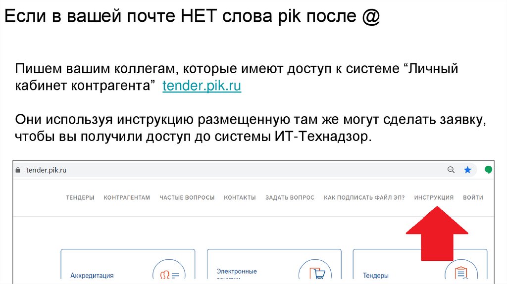 Если в вашей почте НЕТ слова pik после @Пишем вашим коллегам, которые имеют доступ к системе “Личный