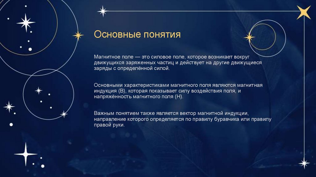 Основные понятияМагнитное поле — это силовое поле, которое возникает вокруг