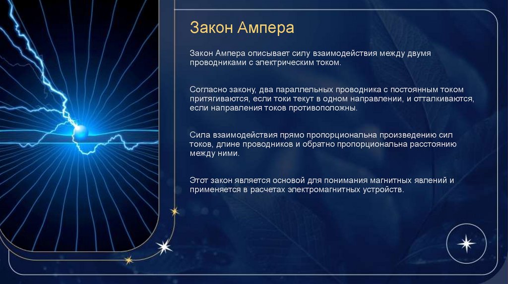 Закон АмпераЗакон Ампера описывает силу взаимодействия между двумя