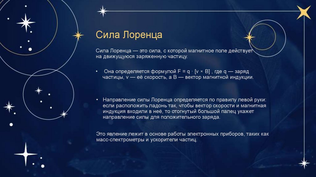 Сила ЛоренцаСила Лоренца — это сила, с которой магнитное поле действует