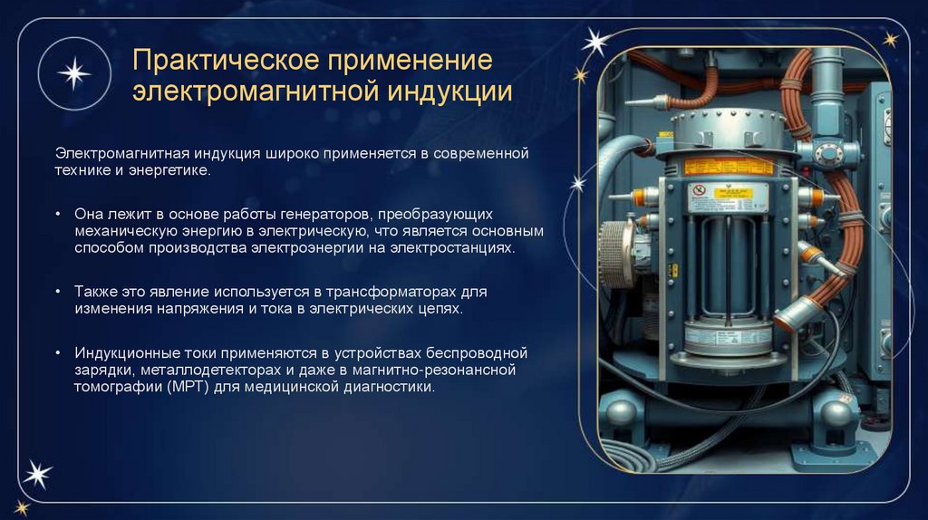 • Это явление было открыто Майклом Фарадеем и лежит в основе работы генераторов электрической