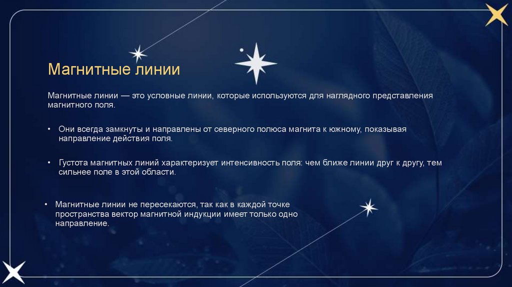 Магнитные линииМагнитные линии — это условные линии, которые используются для наглядного представления