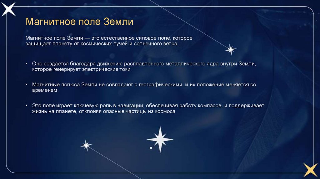 • Это поле играет ключевую роль в навигации, обеспечивая работу компасов, и поддерживает