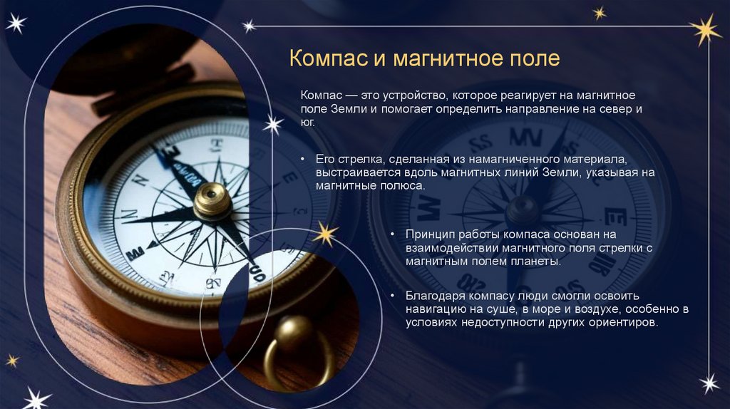 Компас и магнитное полеКомпас — это устройство, которое реагирует на магнитное