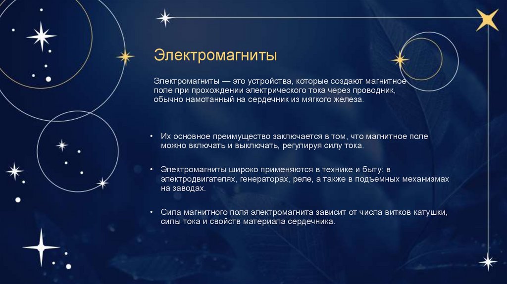 ЭлектромагнитыЭлектромагниты — это устройства, которые создают магнитное