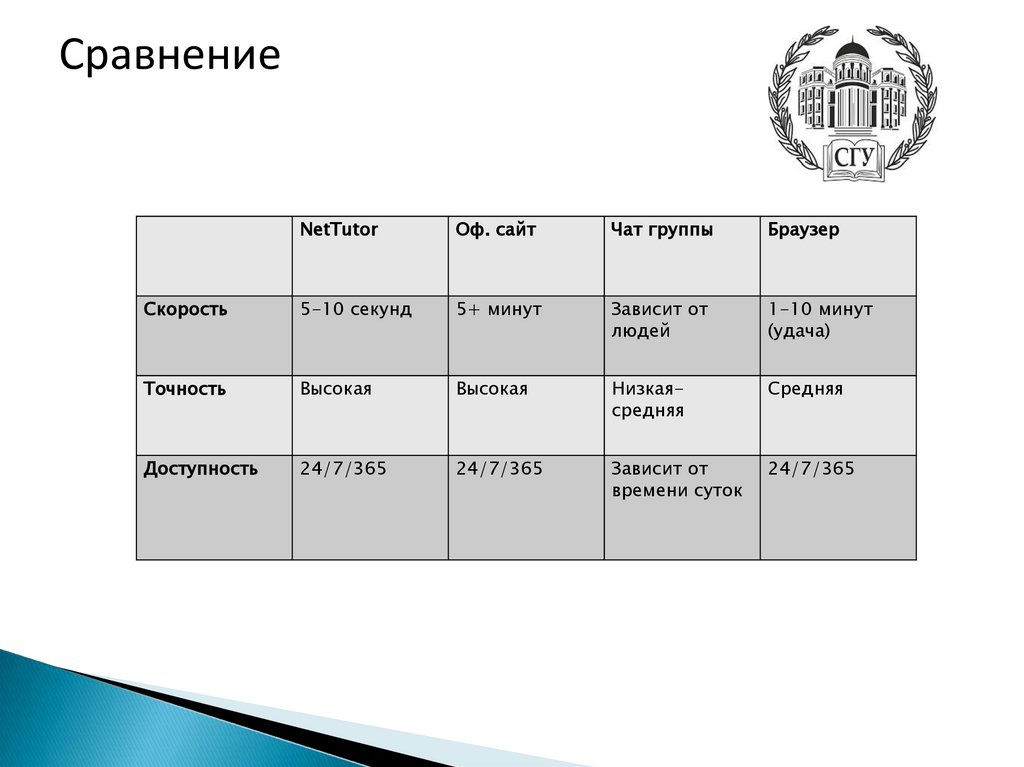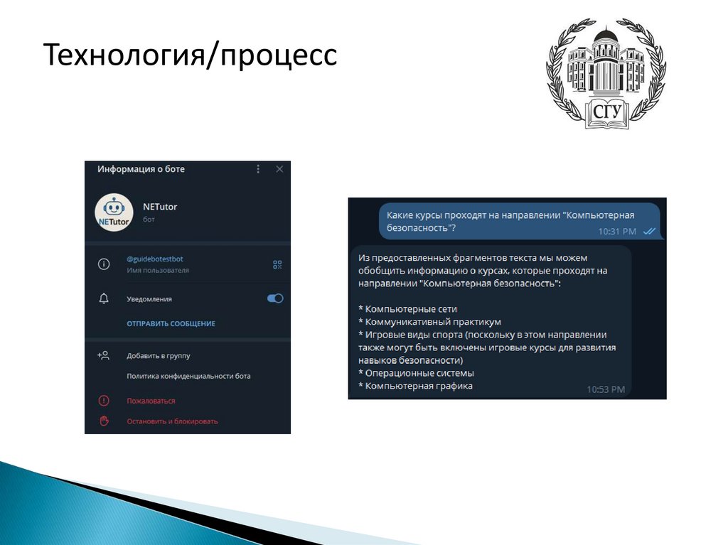 За счет обучения на данных университета наш проект делаетпроцесс получения информации об учебных направлениях