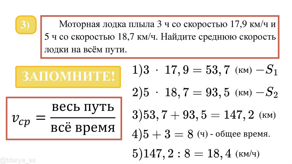3)Моторная лодка плыла 3 ч со скоростью 17,9 км/ч и