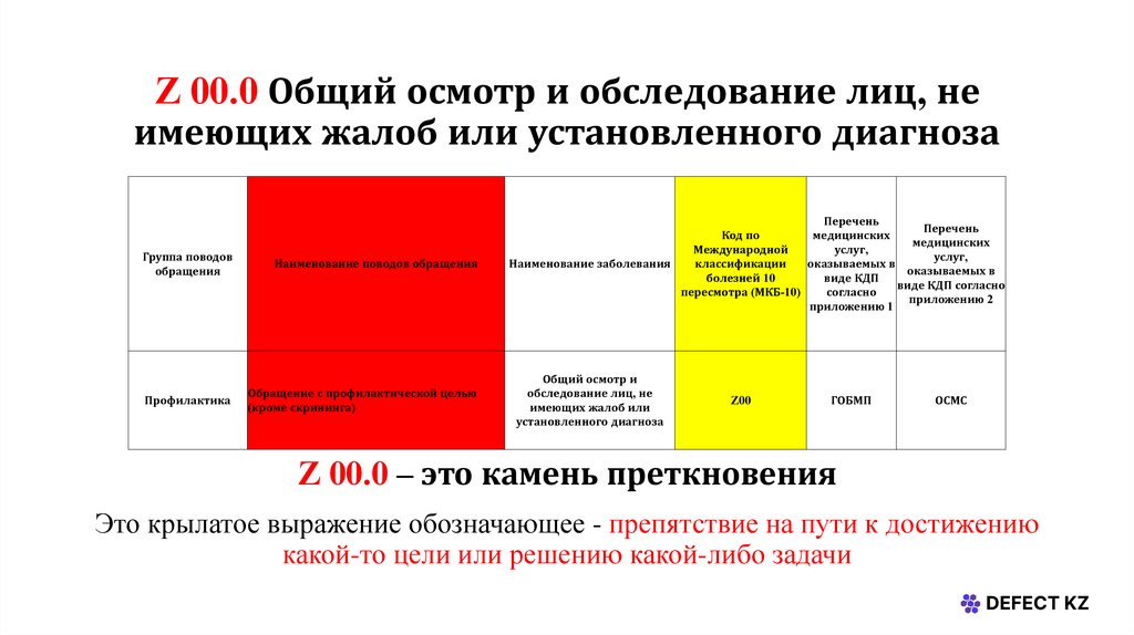 • Z 00.0 – забудьте на всегда. Нет здоровых пациентов которым что-то нужно