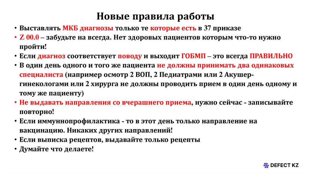 Новые правила работы• Выставлять МКБ диагнозы только те которые есть в 37 приказе