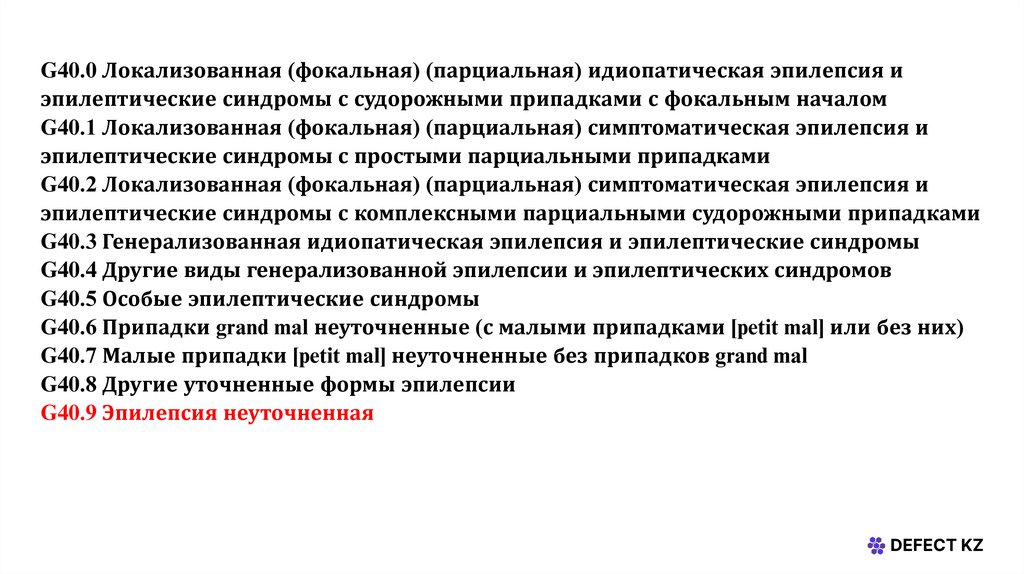 G40.4 Другие виды генерализованной эпилепсии и эпилептических синдромов