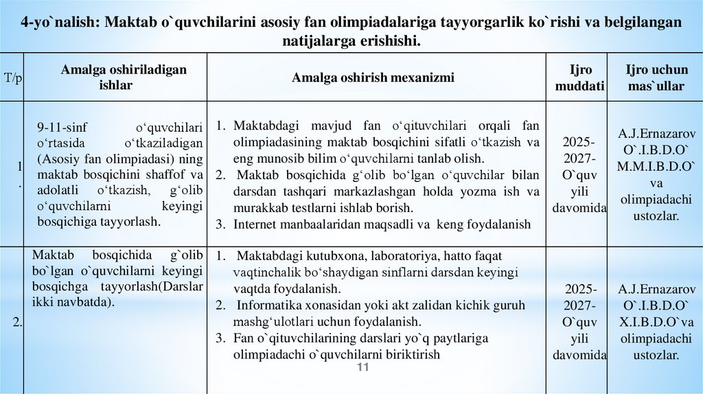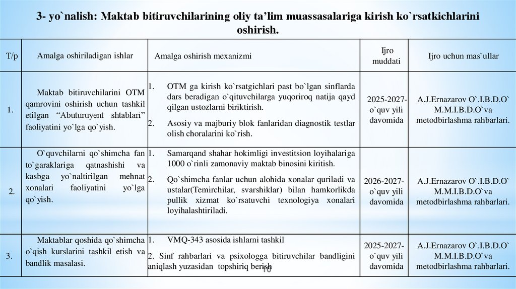 oshirish bo‘yicha amalga oshirilishi lozim