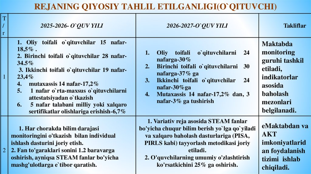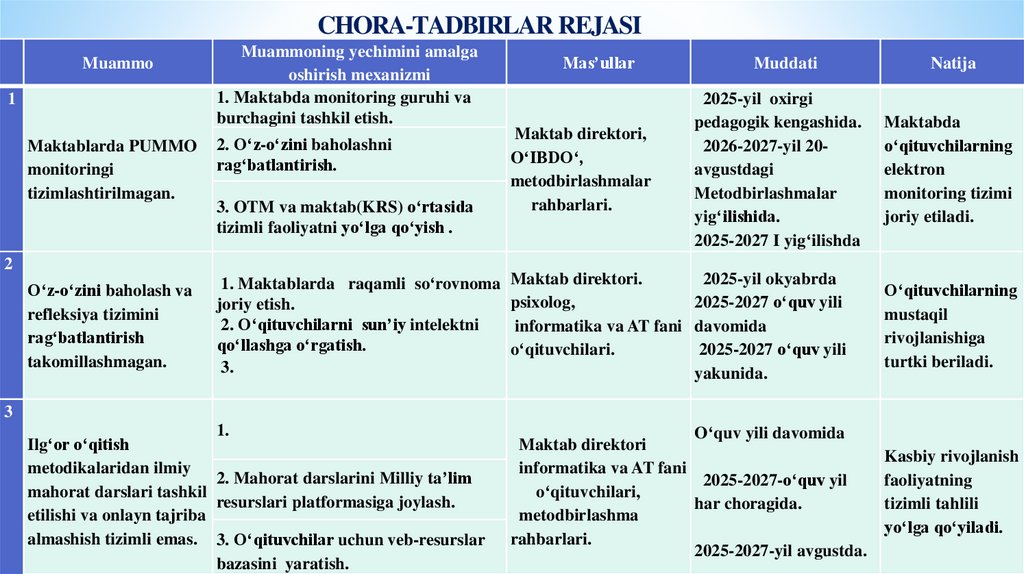 1. Maktabda monitoring guruhi va