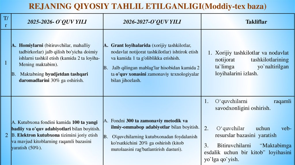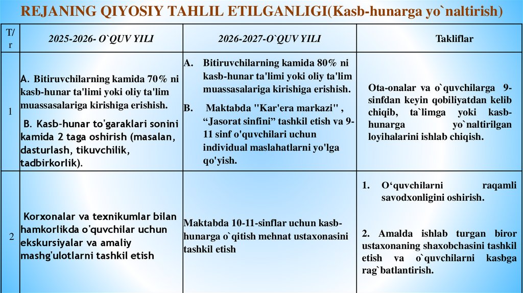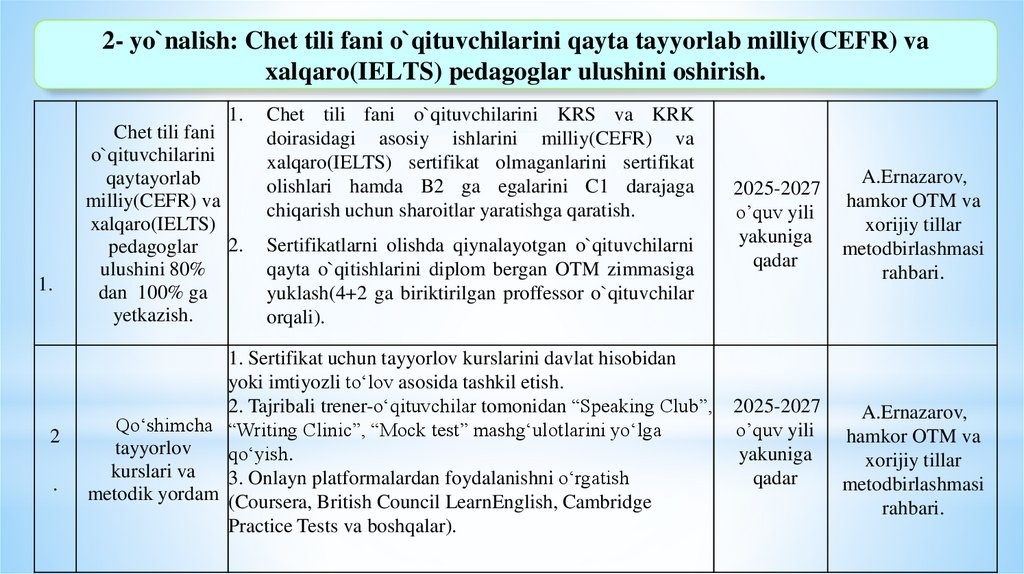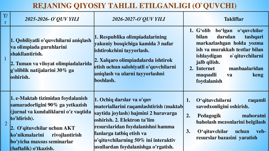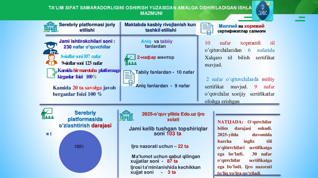 TA’LIM SIFAT SAMARADORLIGINI OSHIRISH YUZASIDAN AMALGA OSHIRILADIGAN ISHLARMAZMUNI