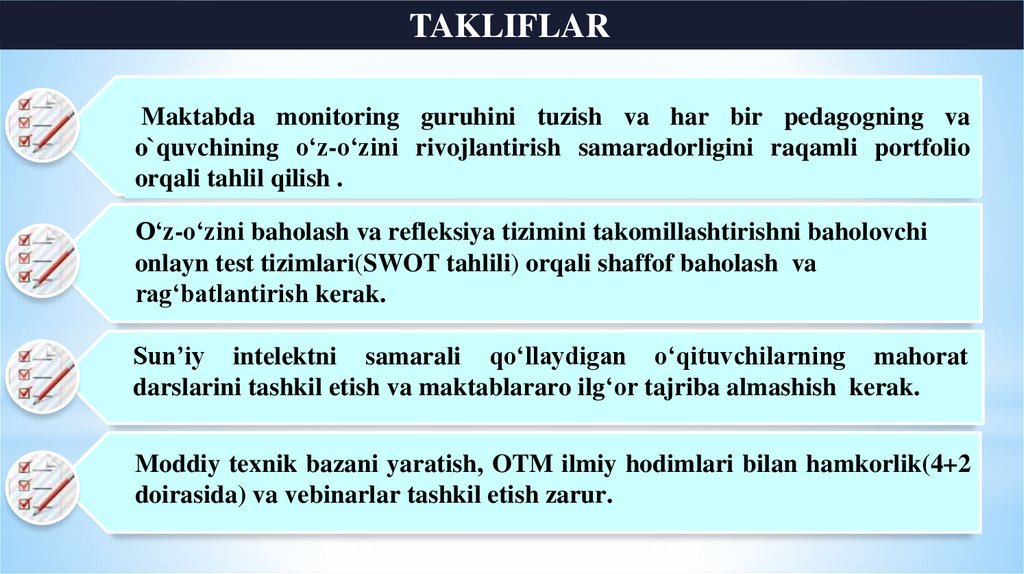 ТАДҚИҚОТНИНГ ВАЗИФАЛАРИTAKLIFLAR