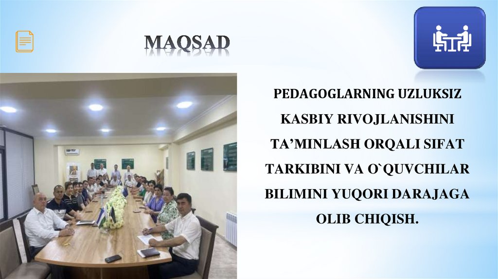malaka toifasiga ega bo‘lishini ta’minlash va ta’limni rivojlantirish