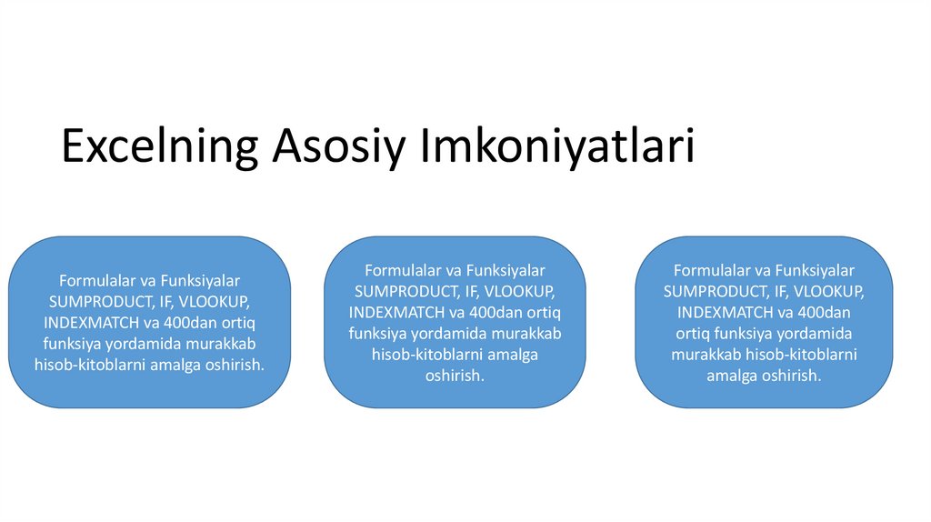 Excelning Asosiy ImkoniyatlariFormulalar va Funksiyalar