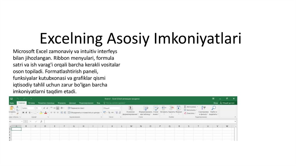 Excelning Asosiy ImkoniyatlariMicrosoft Excel zamonaviy va intuitiv interfeys