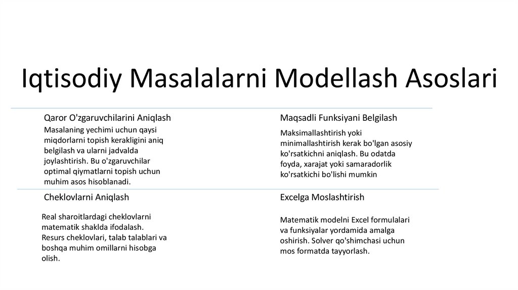 Iqtisodiy Masalalarni Modellash AsoslariQaror O'zgaruvchilarini Aniqlash