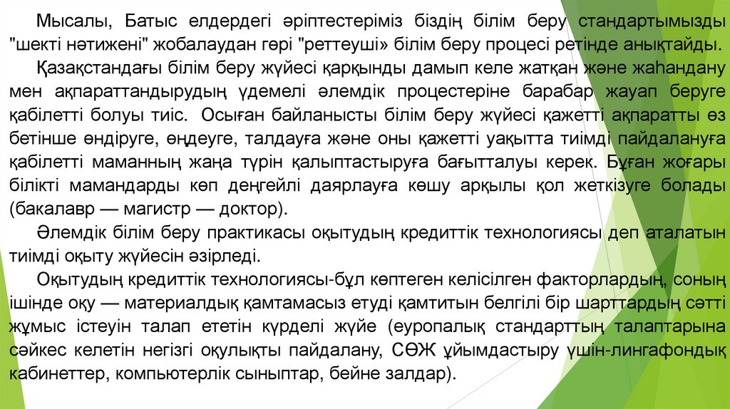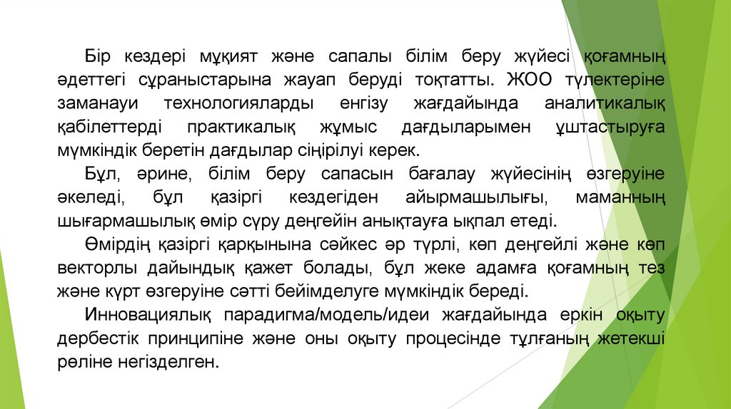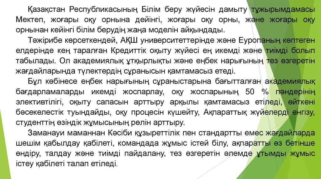 қабілетті маманның жаңа түрін қалыптастыруға бағытталуы керек. Бұған жоғары