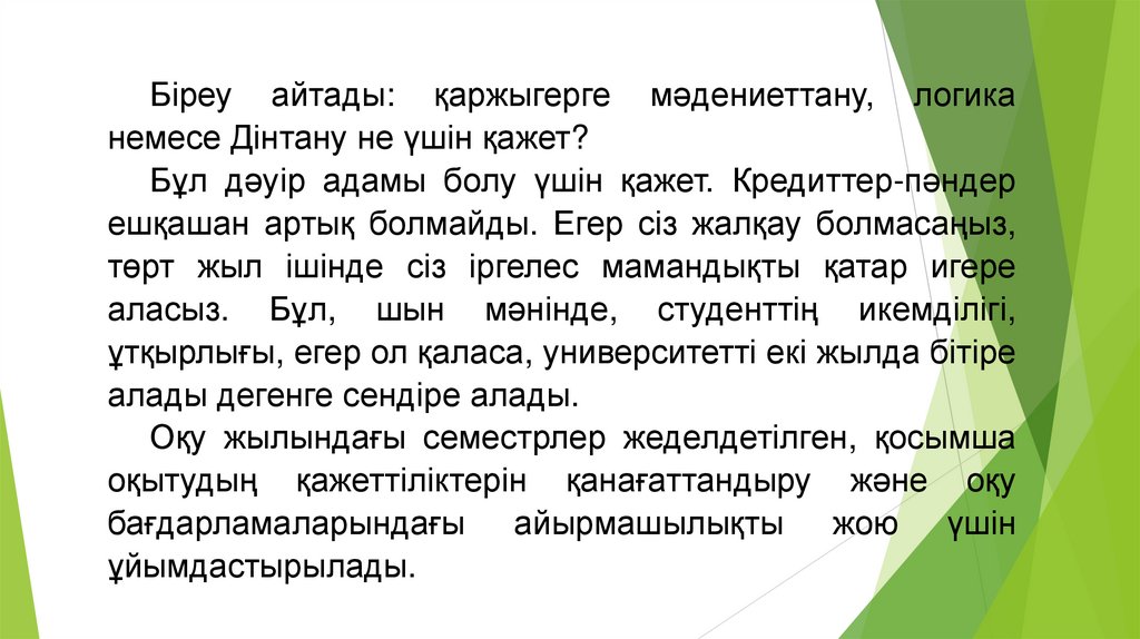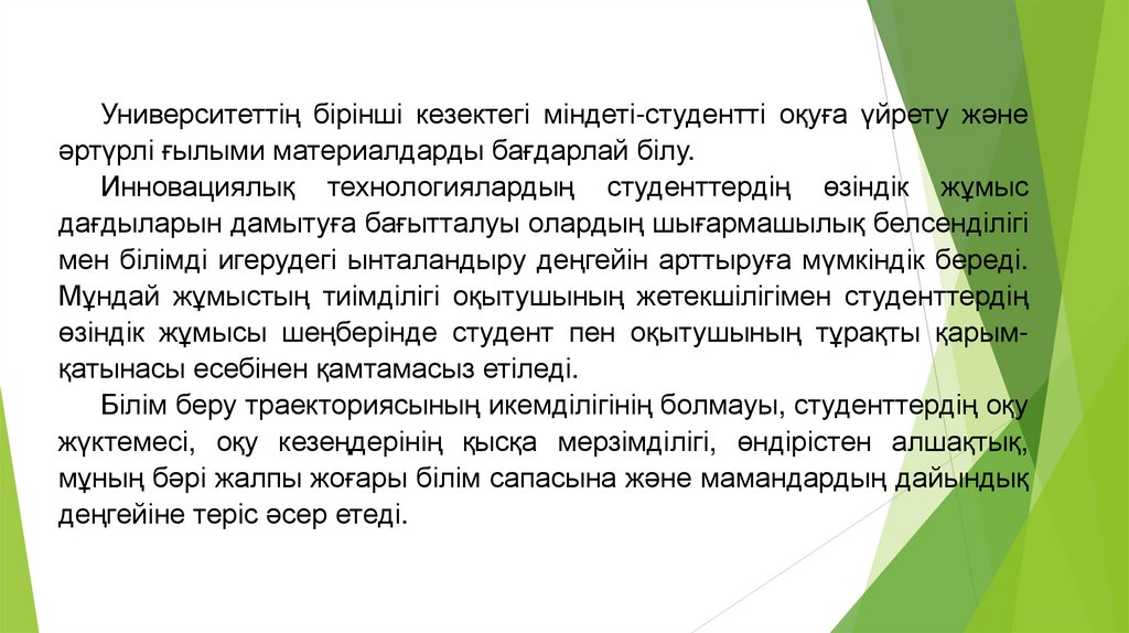 Университеттің бірінші кезектегі міндеті-студентті оқуға үйрету жәнеәртүрлі ғылыми материалдарды бағдарлай білу.
