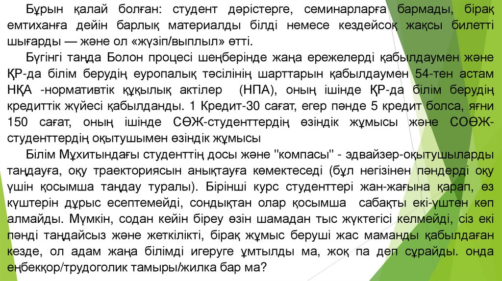 Бұрын қалай болған: студент дәрістерге, семинарларға бармады, бірақемтиханға дейін барлық материалды білді немесе кездейсоқ жақсы билетті
