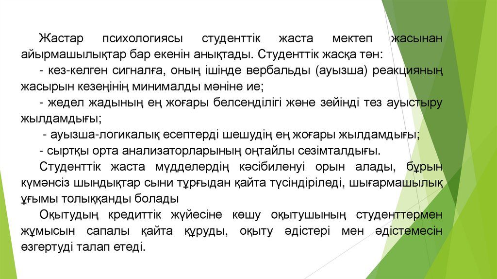 * әрбір студенттің жеке оқу жоспарын қалыптастыруға жеке қатысуы,