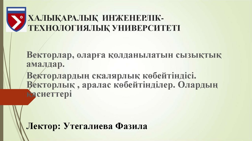 ХАЛЫҚАРАЛЫҚ ИНЖЕНЕРЛІКТЕХНОЛОГИЯЛЫҚ УНИВЕРСИТЕТІВекторлар, оларға қолданылатын сызықтық