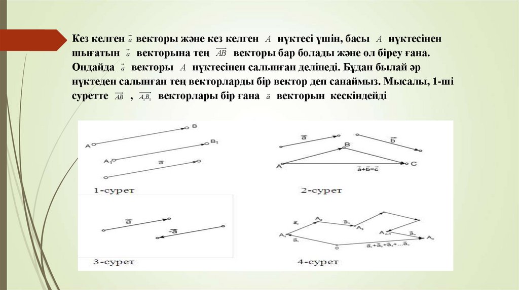 нүктеден салынған тең векторларды бір вектор деп санаймыз. Мысалы, 1-ші