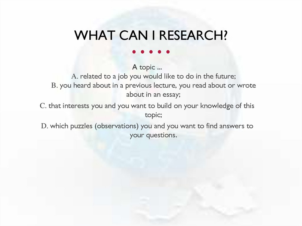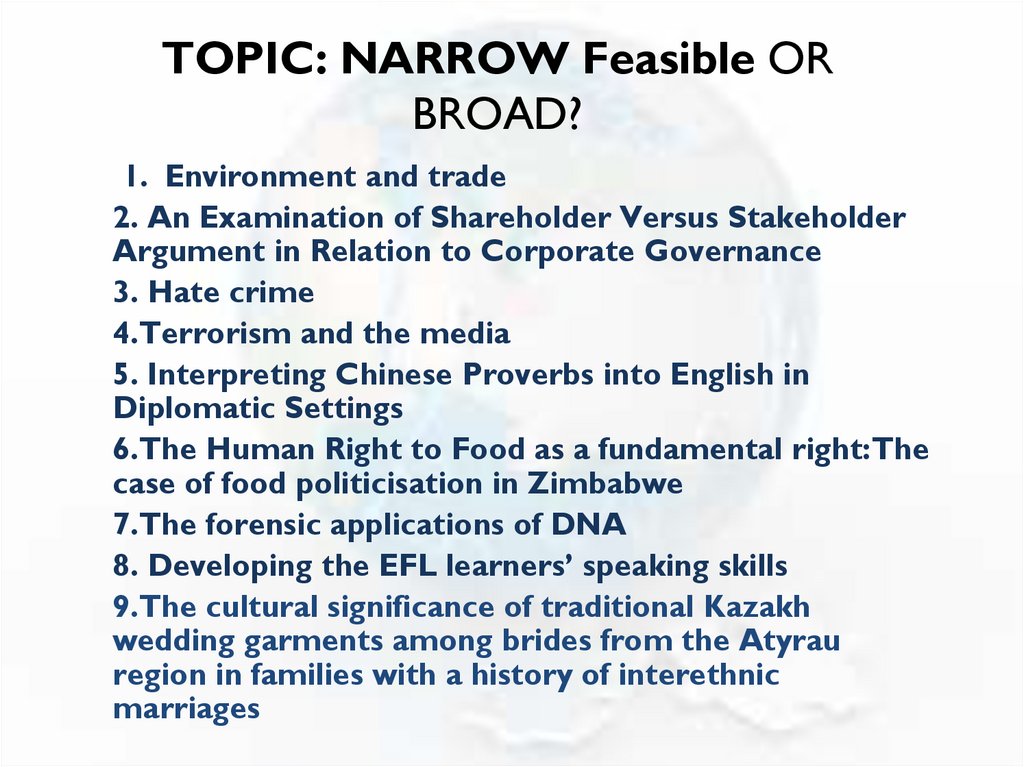•The topic must be clear, specific, and narrow. Too broad topics are