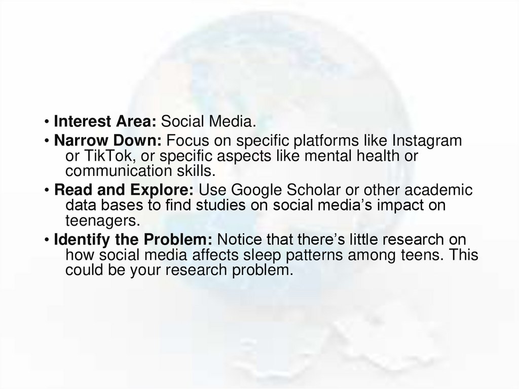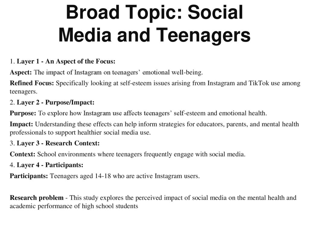• Interest Area: Social Media.• Narrow Down: Focus on specific platforms like Instagram