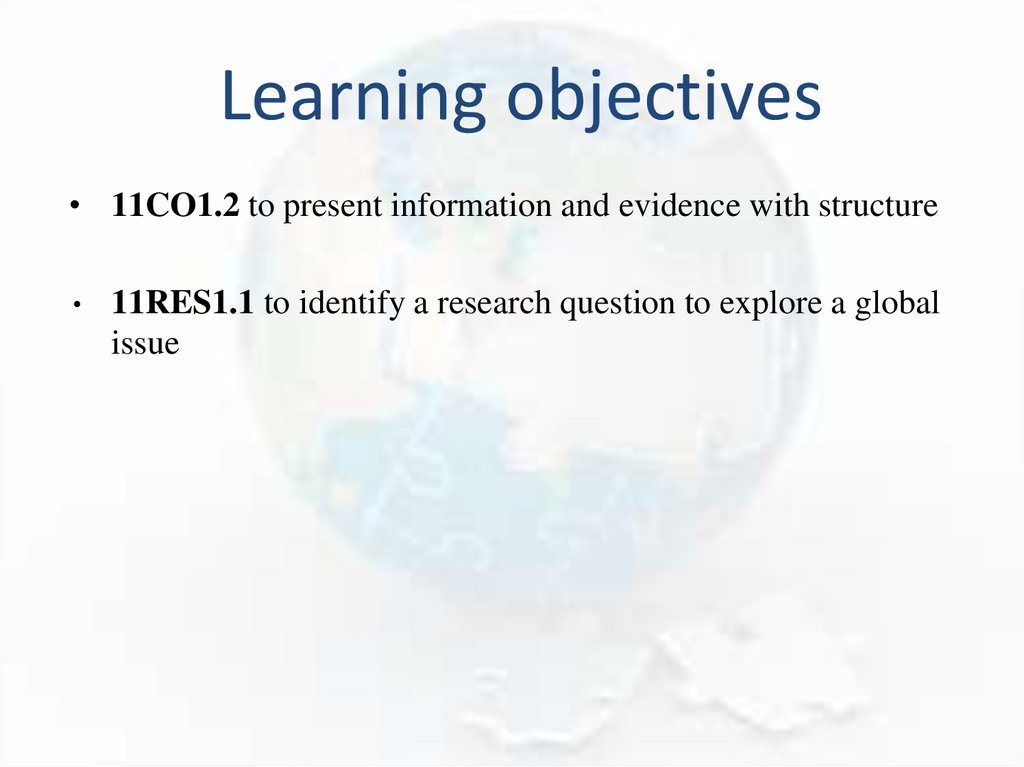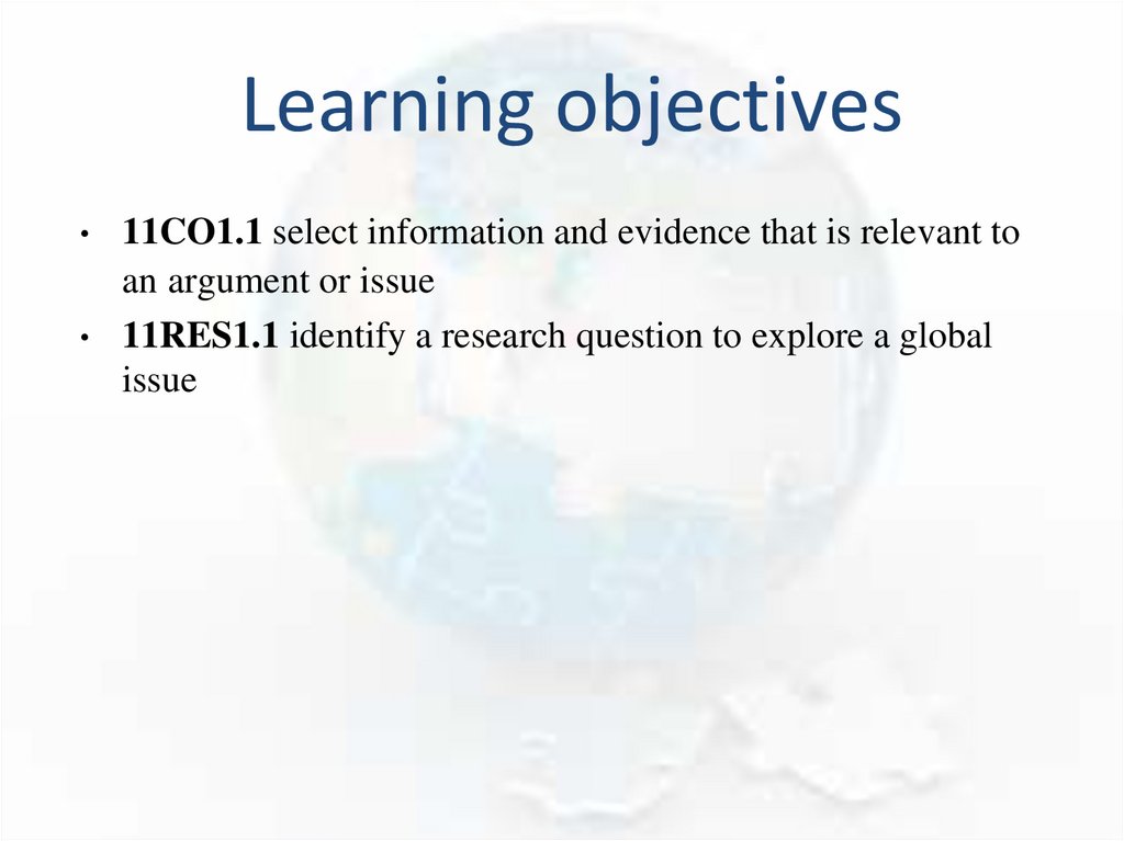 Learning objectives11CO1.1 select information and evidence that is relevant to