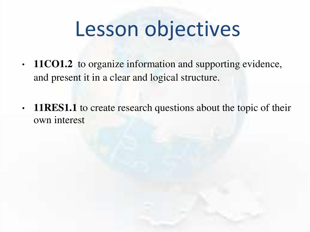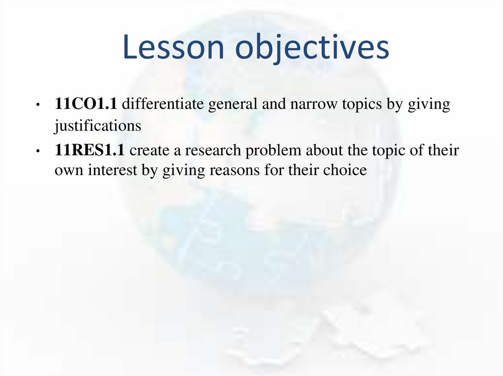 Lesson objectives11CO1.1 differentiate general and narrow topics by giving