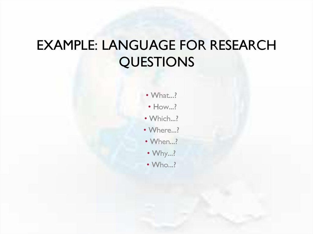 EXAMPLE: LANGUAGE FOR RESEARCH QUESTIONS• What...?