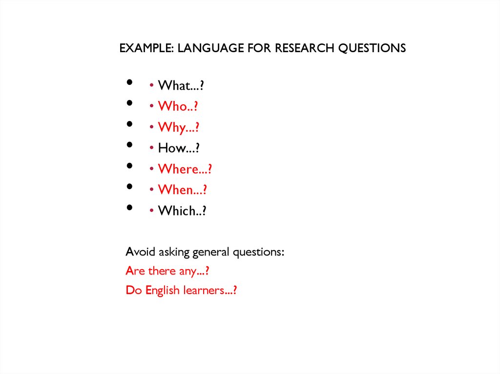 EXAMPLE: LANGUAGE FOR RESEARCHQUESTIONS