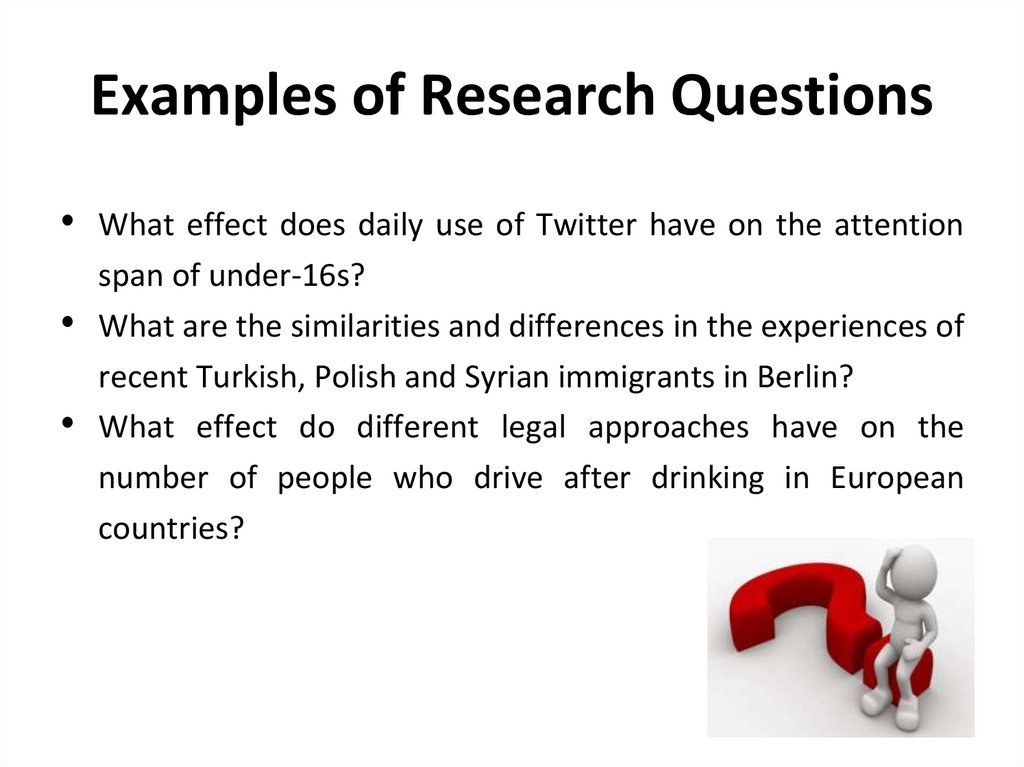 Examples of Research Questions• What effect does daily use of Twitter have on the attention