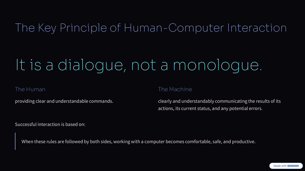 The Key Principle of Human-Computer InteractionIt is a dialogue, not a monologue.