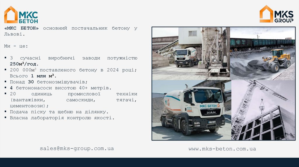 «МКС БЕТОН» основний постачальник бетону уЛьвові.