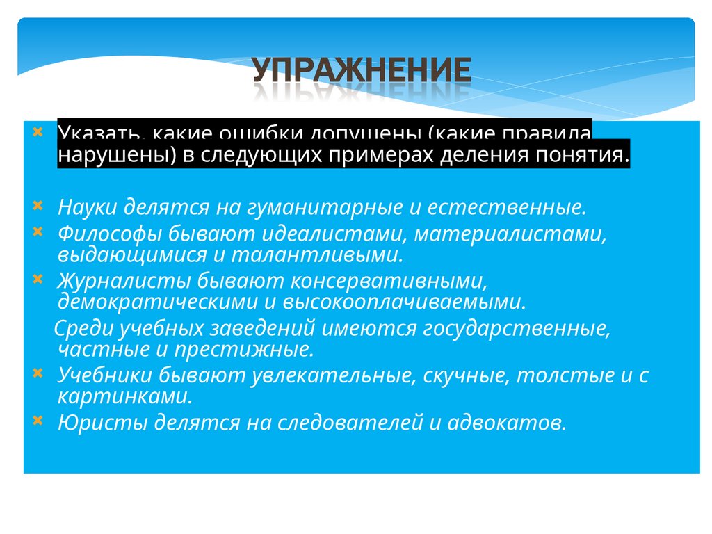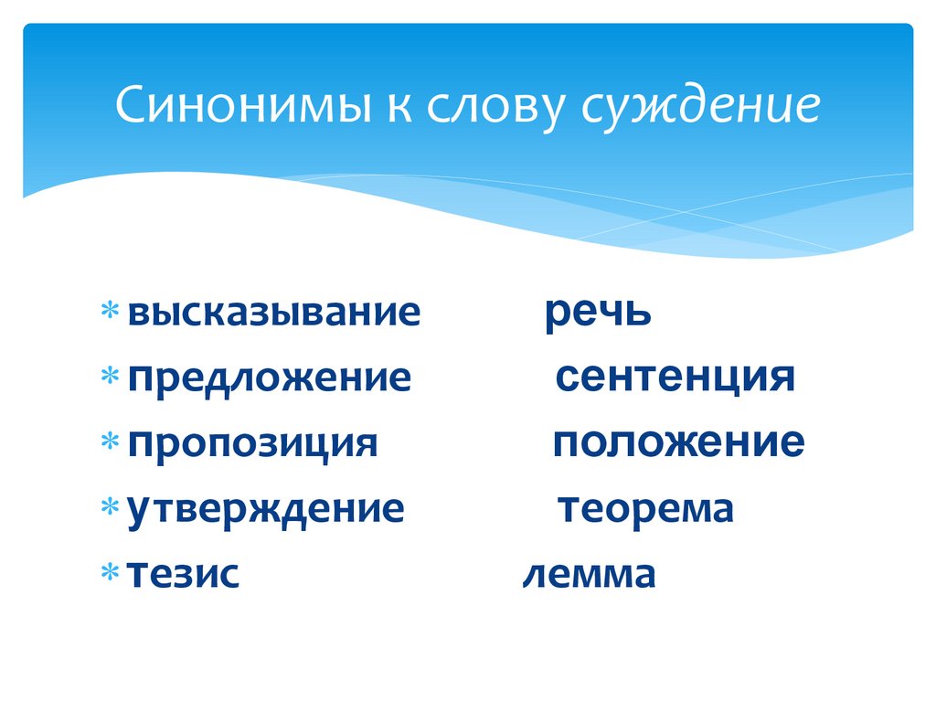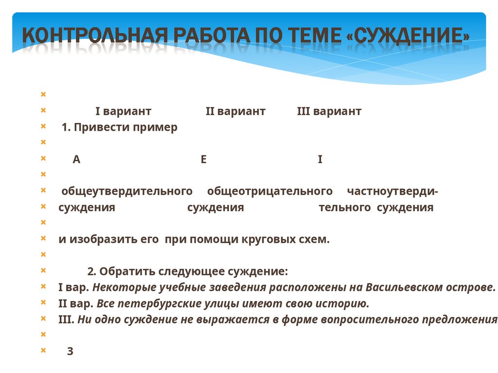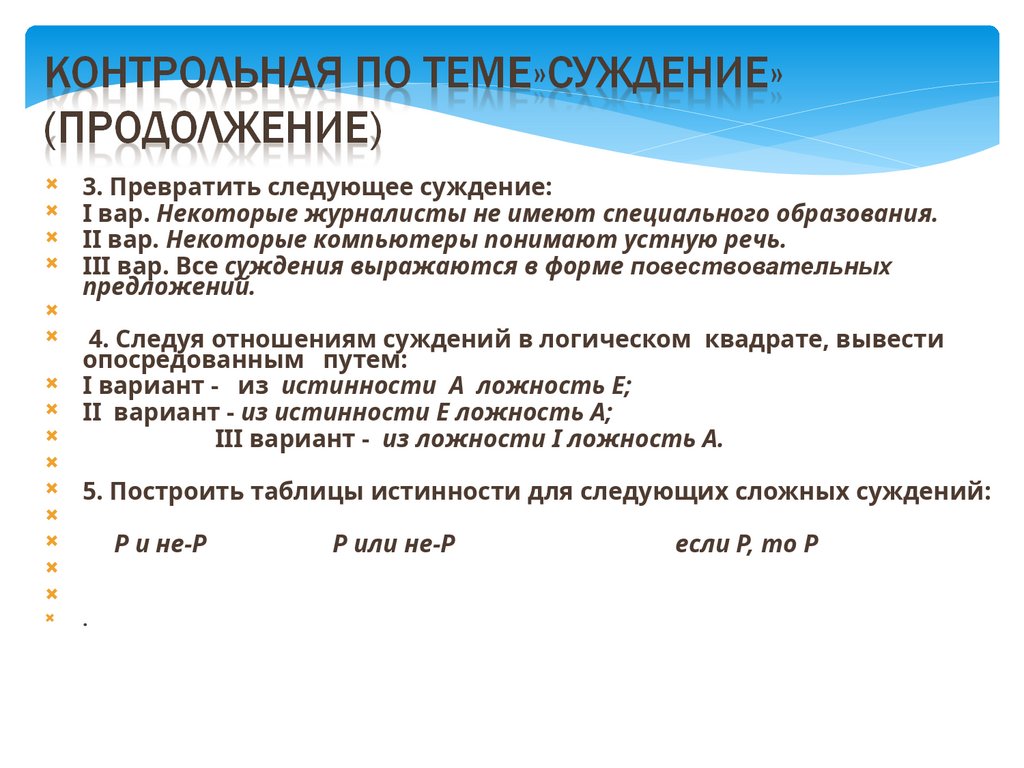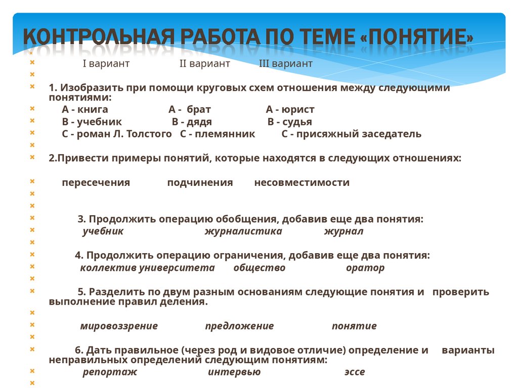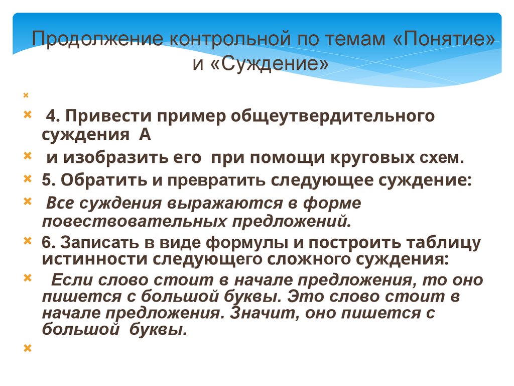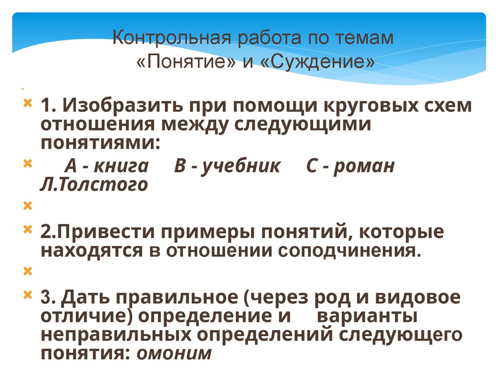 Продолжение контрольной по темам «Понятие»и «Суждение»