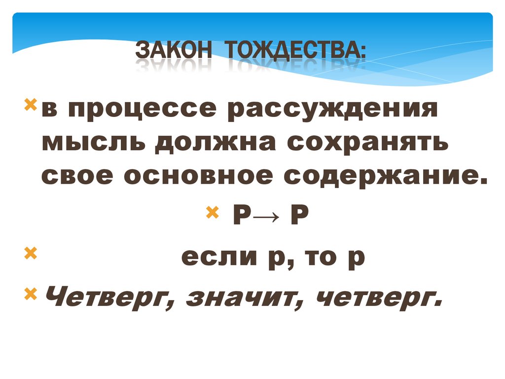 Закон исключенного четвертогоКаждая возможность исключает две остальные;