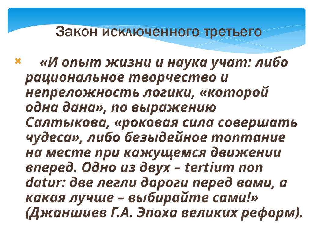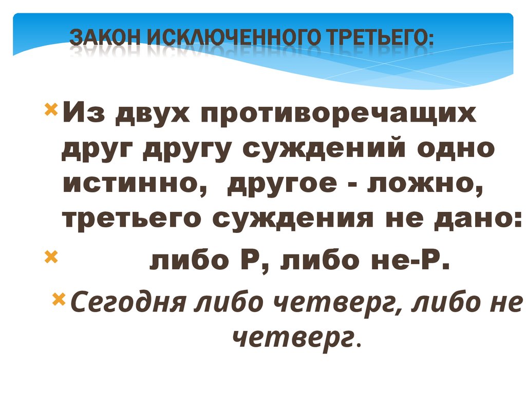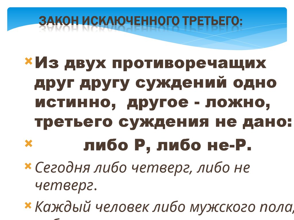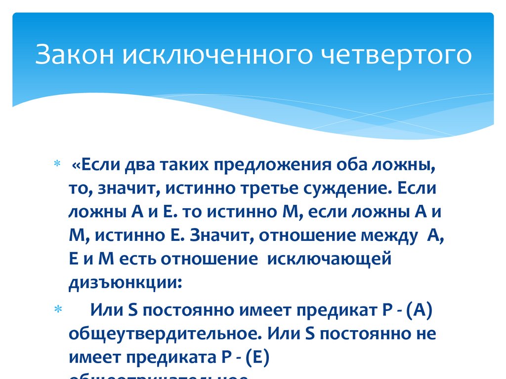 Закон исключенного четвертого«Если два таких предложения оба ложны,