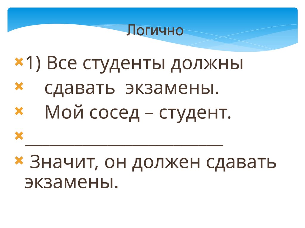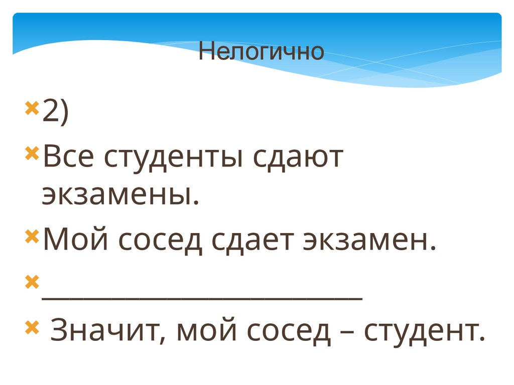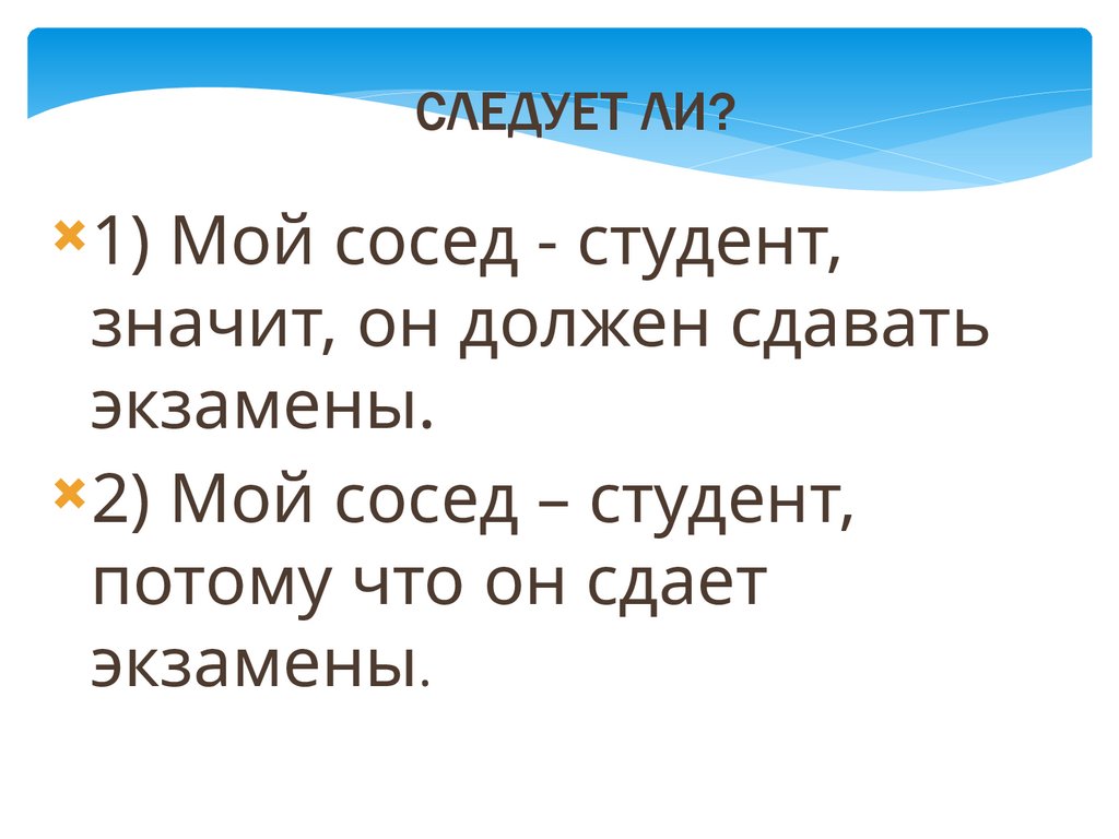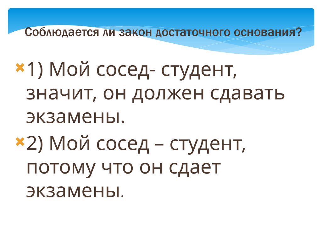 Соблюдается ли закон достаточного основания?1) Мой сосед- студент,