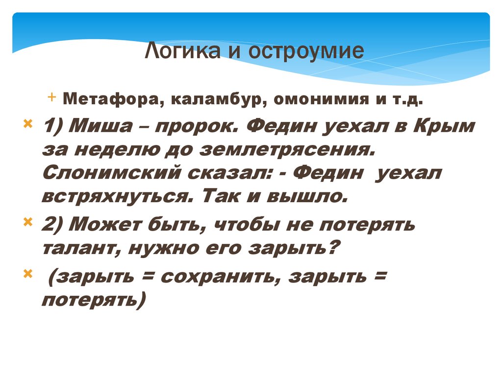 Логика и остроумиеМетафора, каламбур, омонимия и т.д.