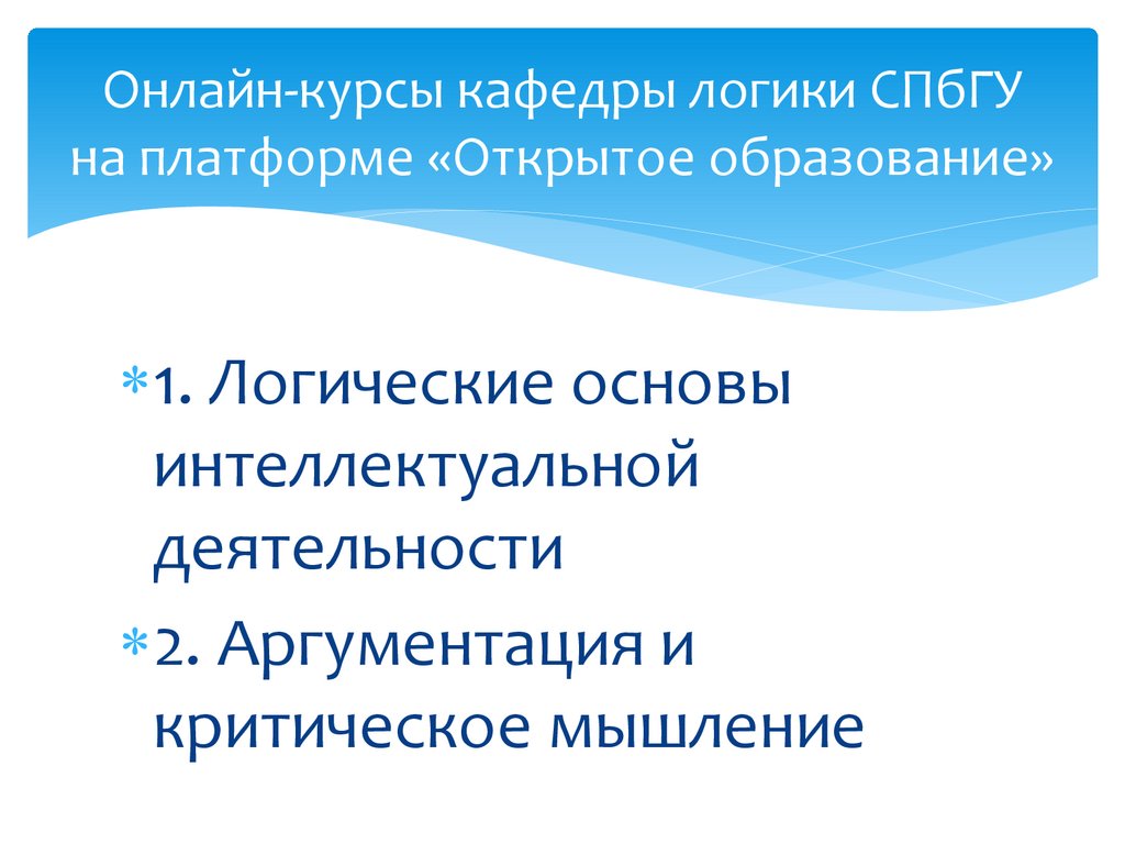 Онлайн-курсы кафедры логики СПбГУна платформе «Открытое образование»