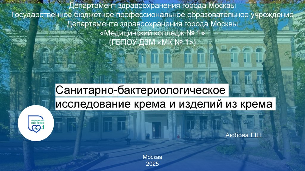 Департамент здравоохранения города МосквыГосударственное бюджетное профессиональное образовательное учреждение