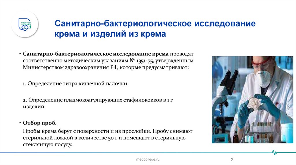 Пробы крема берут с поверхности и из прослойки. Пробу снимают