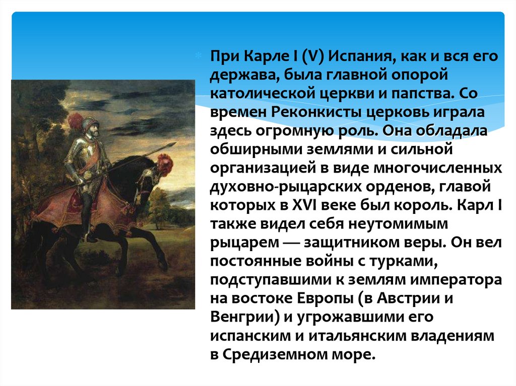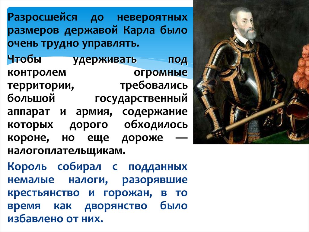 15. При Карле I и Филиппе II Испанская империя достигла вершины могущества. Она обладала самой сильной в Европе армией и флотом,