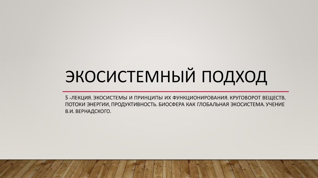 ЭКОСИСТЕМНЫЙ ПОДХОД5 -ЛЕКЦИЯ. ЭКОСИСТЕМЫ И ПРИНЦИПЫ ИХ ФУНКЦИОНИРОВАНИЯ. КРУГОВОРОТ ВЕЩЕСТВ,
